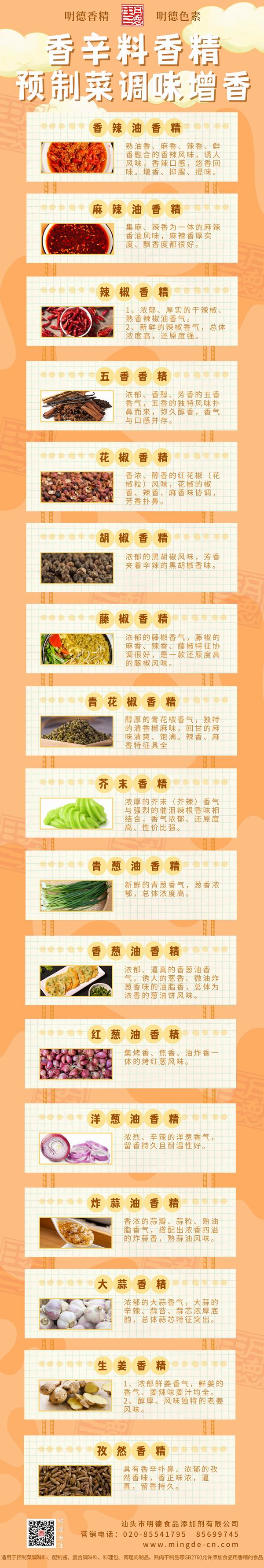 此外 明德食品添加劑 還研發(fā)了眾多香辛料風(fēng)味類香精,如小蔥、青蔥、炸蔥,如藤椒、花椒、麻椒等等,近10年來在調(diào)味料、醬料、火鍋底料多有應(yīng)用,好評如潮。諸如此類,各有特色。歡迎有興趣的廠家朋友們咨詢聯(lián)系!-