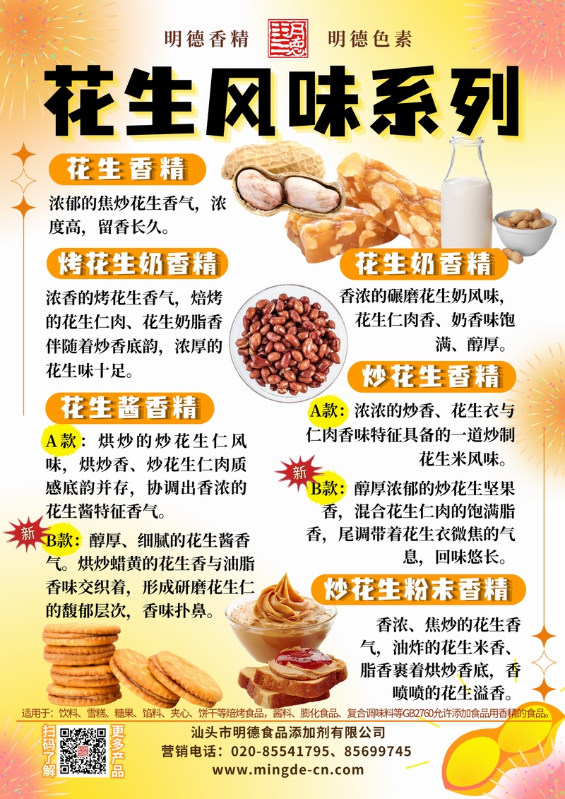 如需索取不同款花生香精樣品或配方應(yīng)用指導,歡迎聯(lián)系明德團隊。
